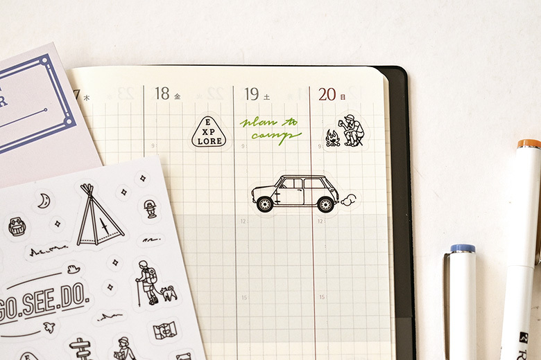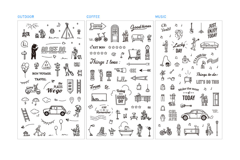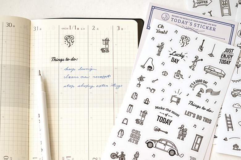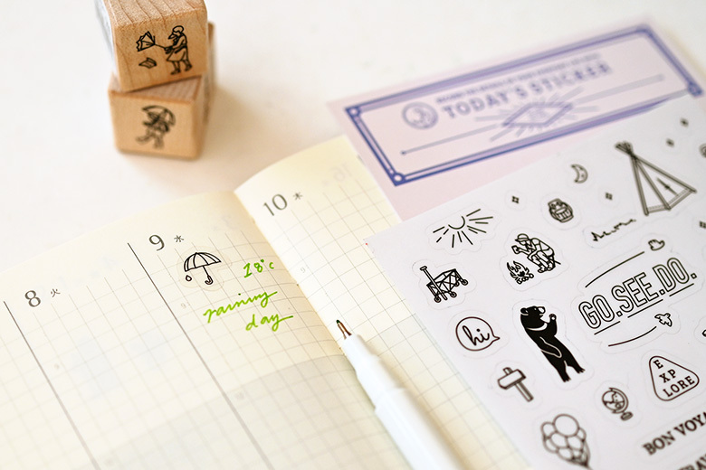 本日印章簡單、生活化的圖案有了生力軍,透明貼紙材質紮實、是手帳圖像化的好幫手!