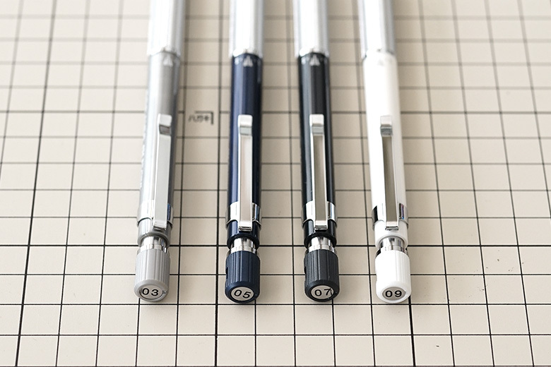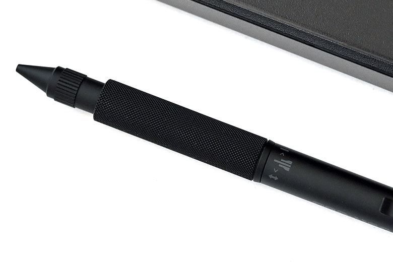 附強筆壓功能,當書寫力道較大時筆芯會內縮減少斷芯機會,護芯管長度可調整。是款較為萬用的自動筆。