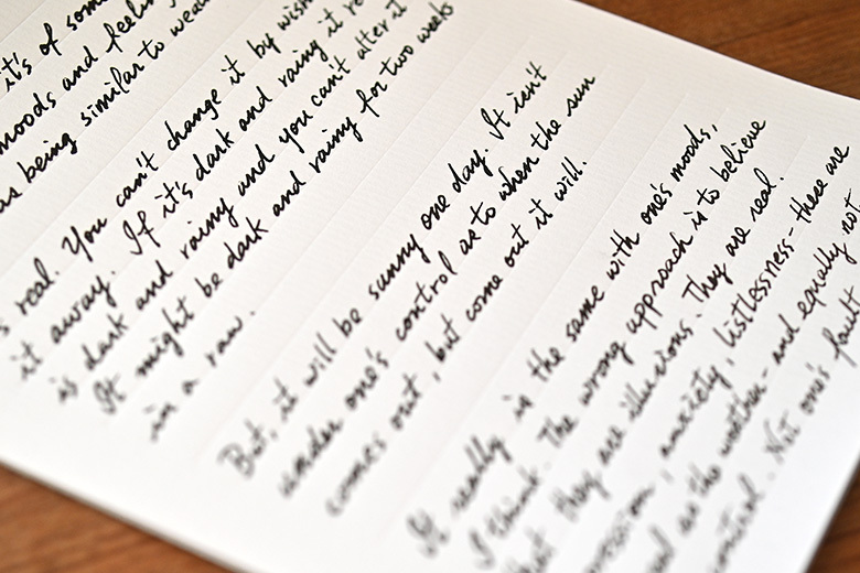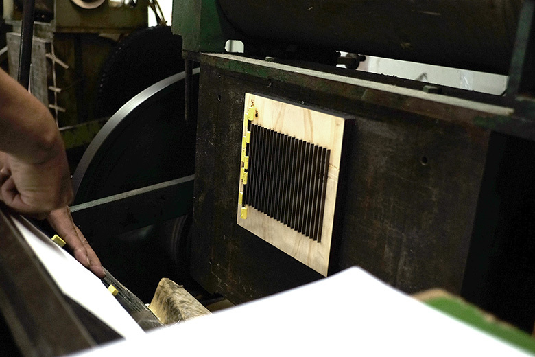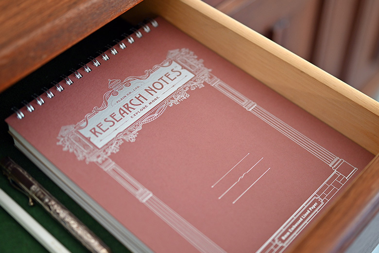 內頁橫線以鋁版一張張手動壓製而成,書寫時文字能夠整齊排成行列、某些角度卻又看不到線條。65張線圈裝適鋼筆書寫。