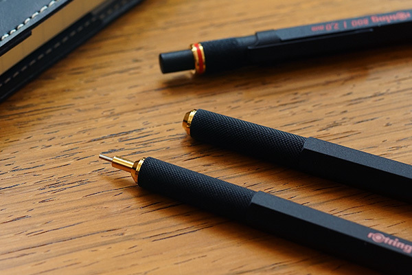 Rotring最高階款式的800系列,自動鉛筆採兩段式出芯設計、可保護筆尖。