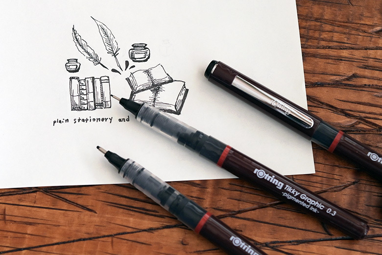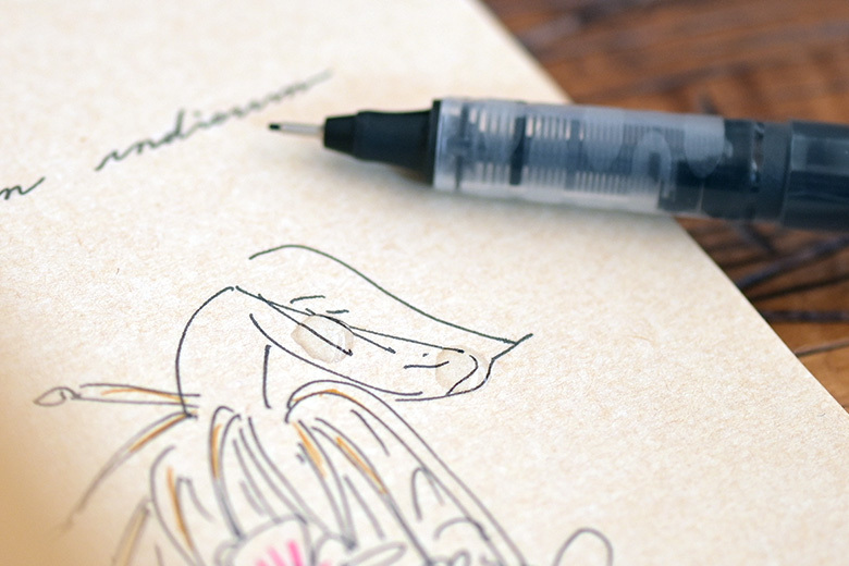 顏料墨水具有耐光性和耐水性,顏色濃黑持久,同時抗酒精的效果相當好,可上線稿再用水性麥克筆上色不暈開。