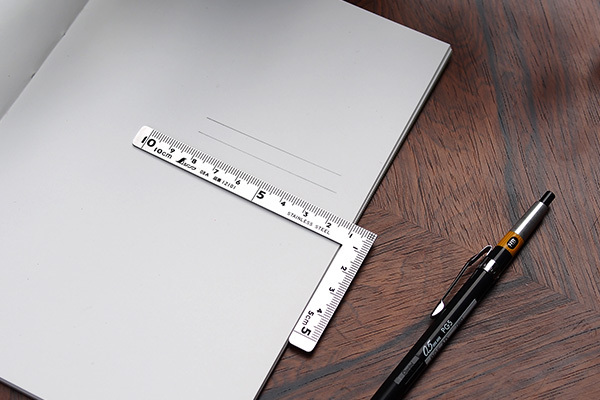 角尺是細木作的必備工具,主要用來量測兩邊是否垂直,以及作為畫墨線的輔助工具。一般用的角尺較大,而且厚實,但我們找到了這款方便攜帶的迷你角尺,還可以在一般角尺無法使用的小角落裡測量。不過最有趣的是我們發現它也能作為一般文具使用。
