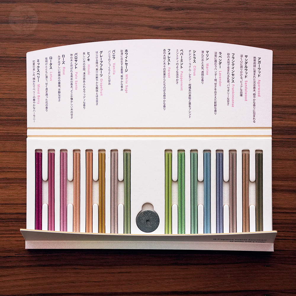 以花卉、香木、水果等各種純粹香氣為靈感,透過獨家的「壓縮成形」技術忠實再現出香氣。