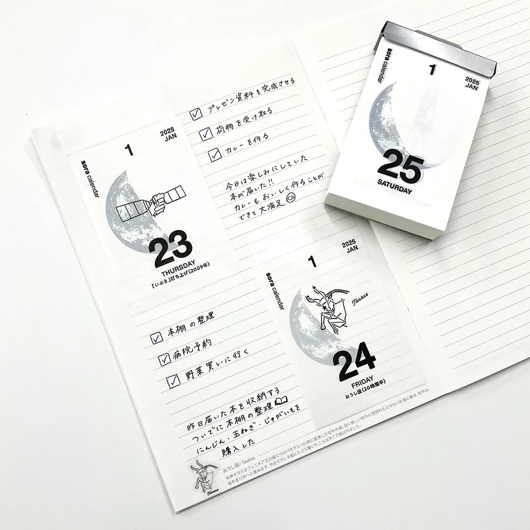 以天文觀測的風格來呈現當天月亮的宇宙日曆縮小了,適中的尺寸適合貼在手帳上。