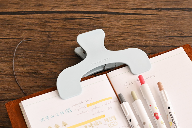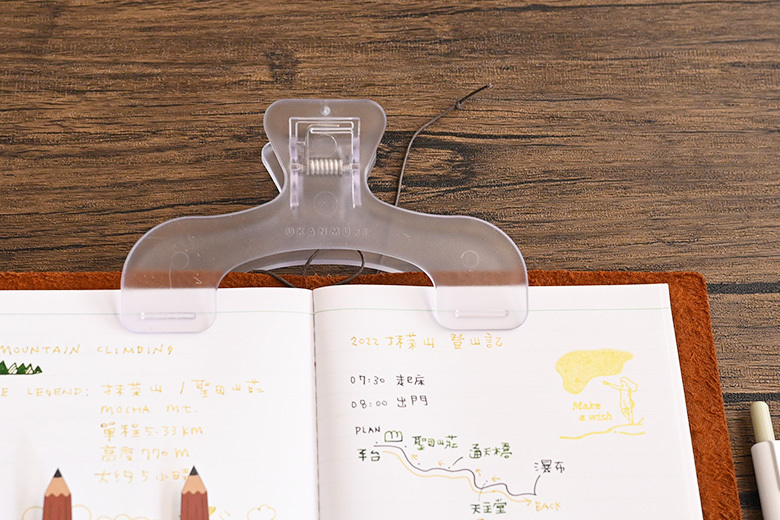 讓人眼睛為之一亮的設計,將常見的夾子稍微改變一下形狀,巧妙的避開了書脊就可把書本全攤平。