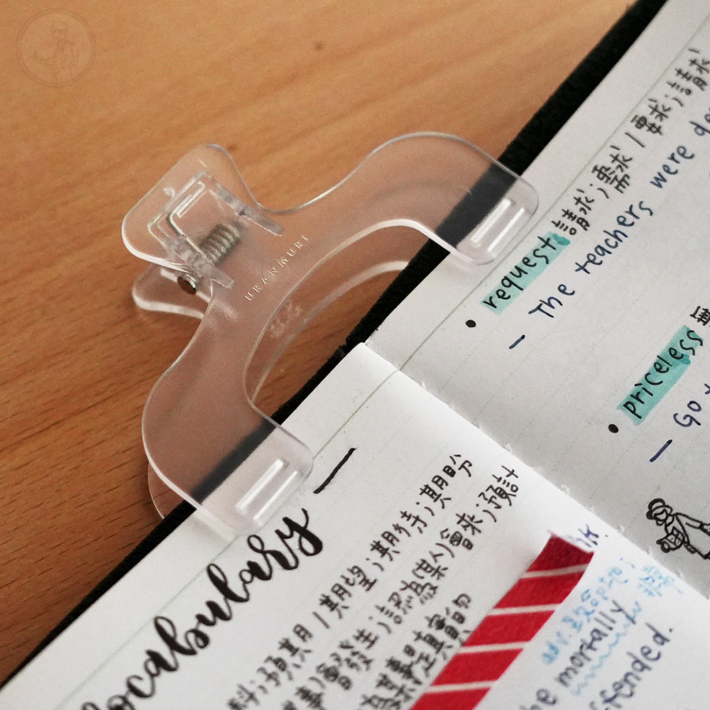 讓人眼睛為之一亮的設計,將常見的夾子稍微改變一下形狀,巧妙的避開了書脊就可把書本全攤平。