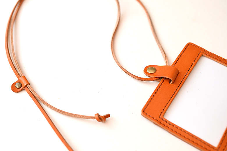 採用厚實的日本栃木牛皮、堅持日本職人製成,皮製掛繩可調節長短、材質紮實、背面一共有二個袋口。