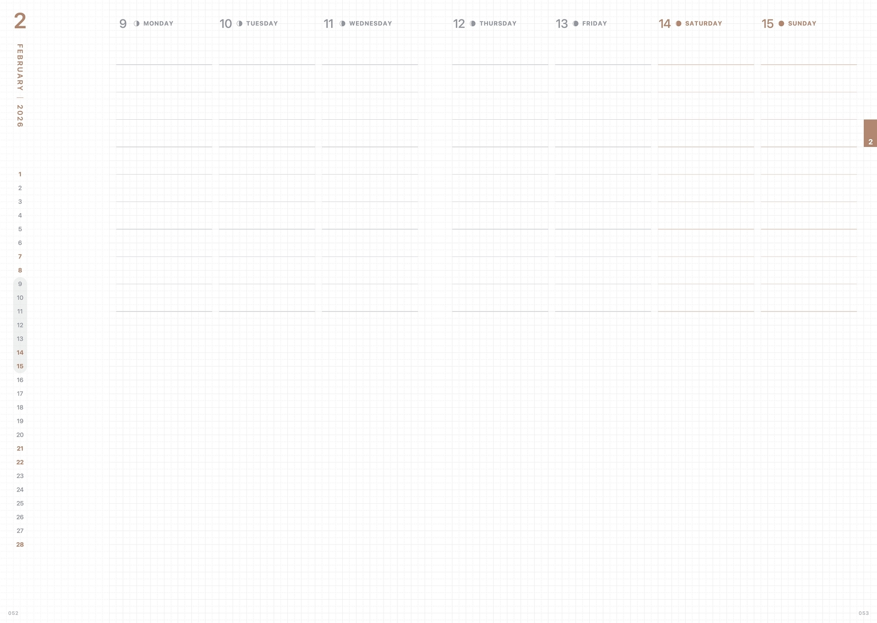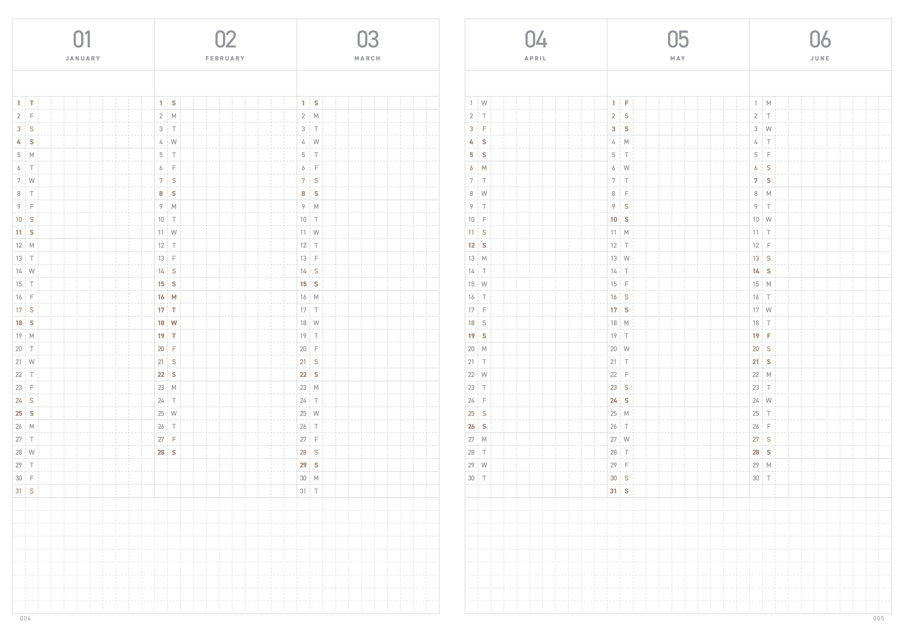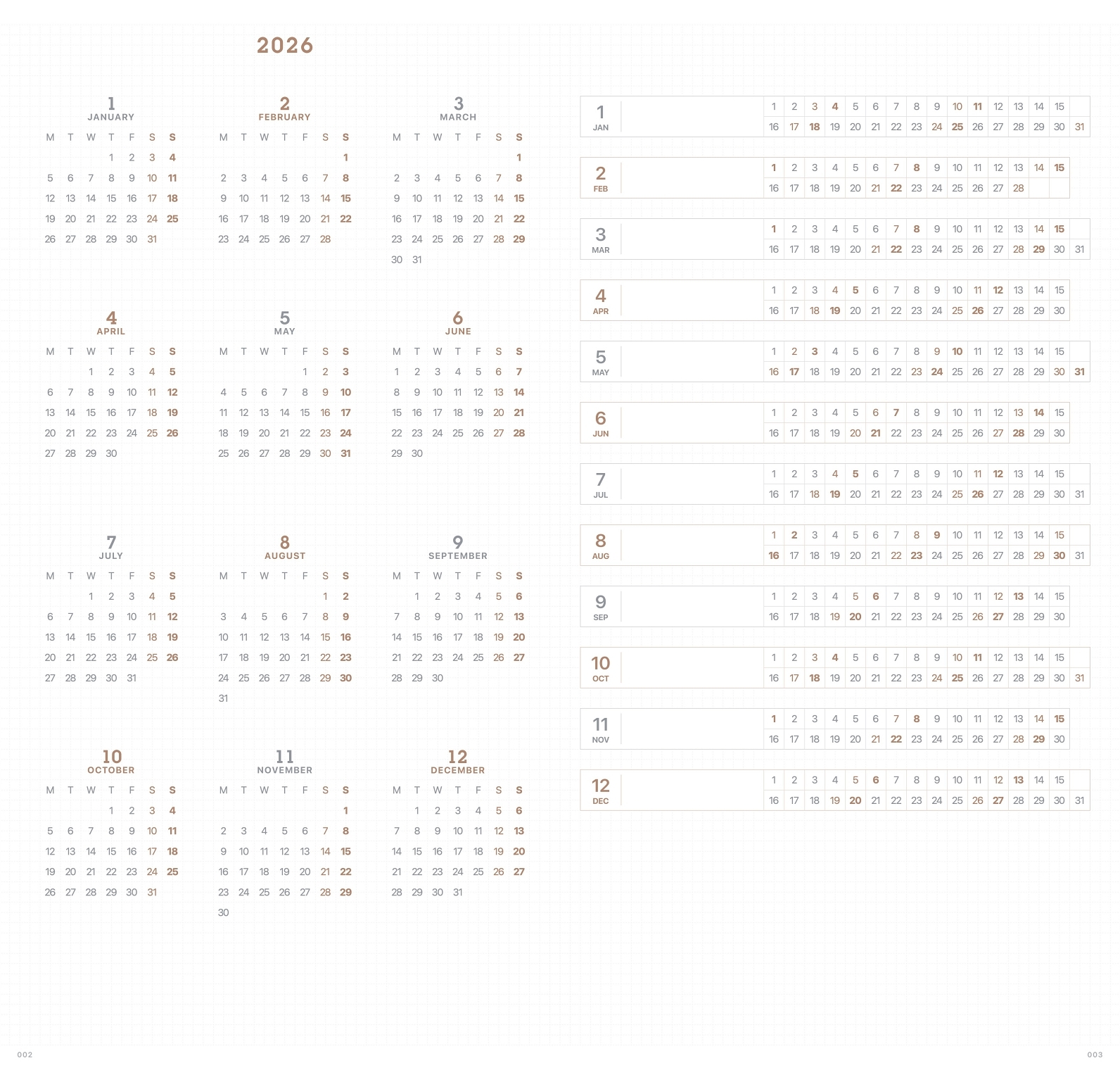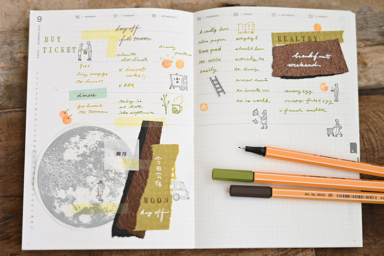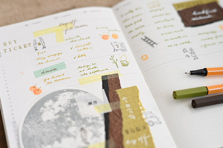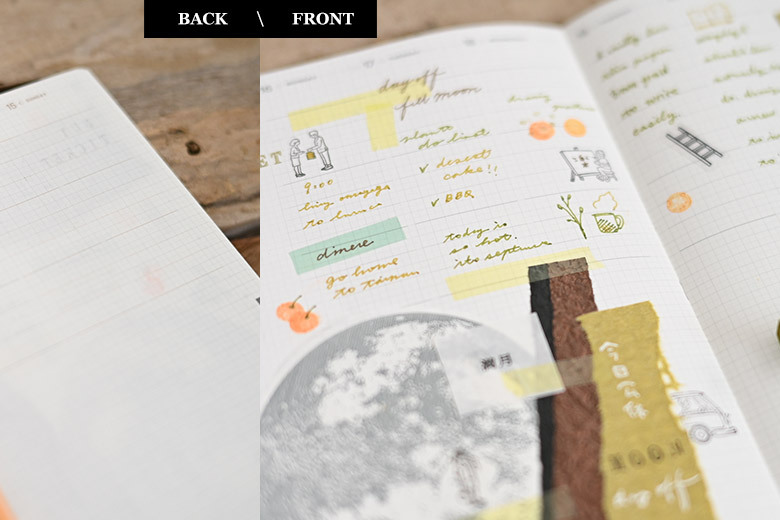 適中的B6尺寸,頁面底部鋪滿極淡色方格,無間隔的方格設計擺脫框架束縛,增加更多書寫空間。