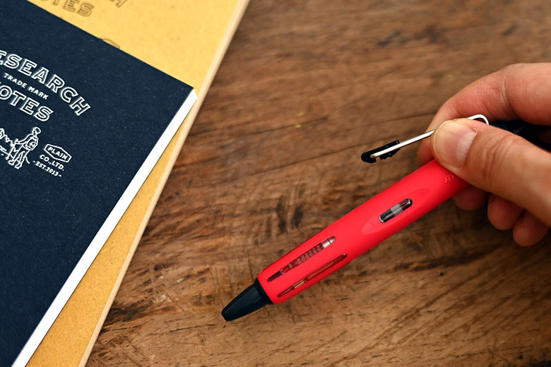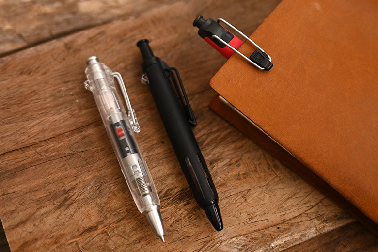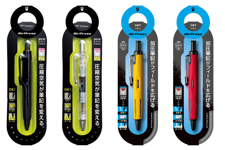 每次按壓都會對筆芯產生壓力 ,書寫時較不受地心引力影響,可以筆芯向上書寫、寫在溼紙上也沒問題。