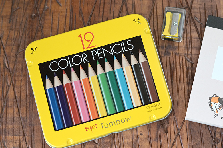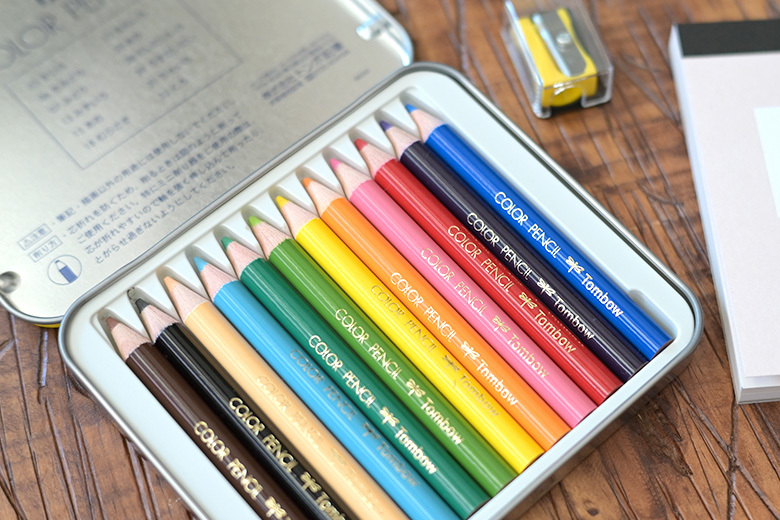 內含12個日常使用度較高的顏色,手掌大小便於攜帶,包含了削鉛筆器。