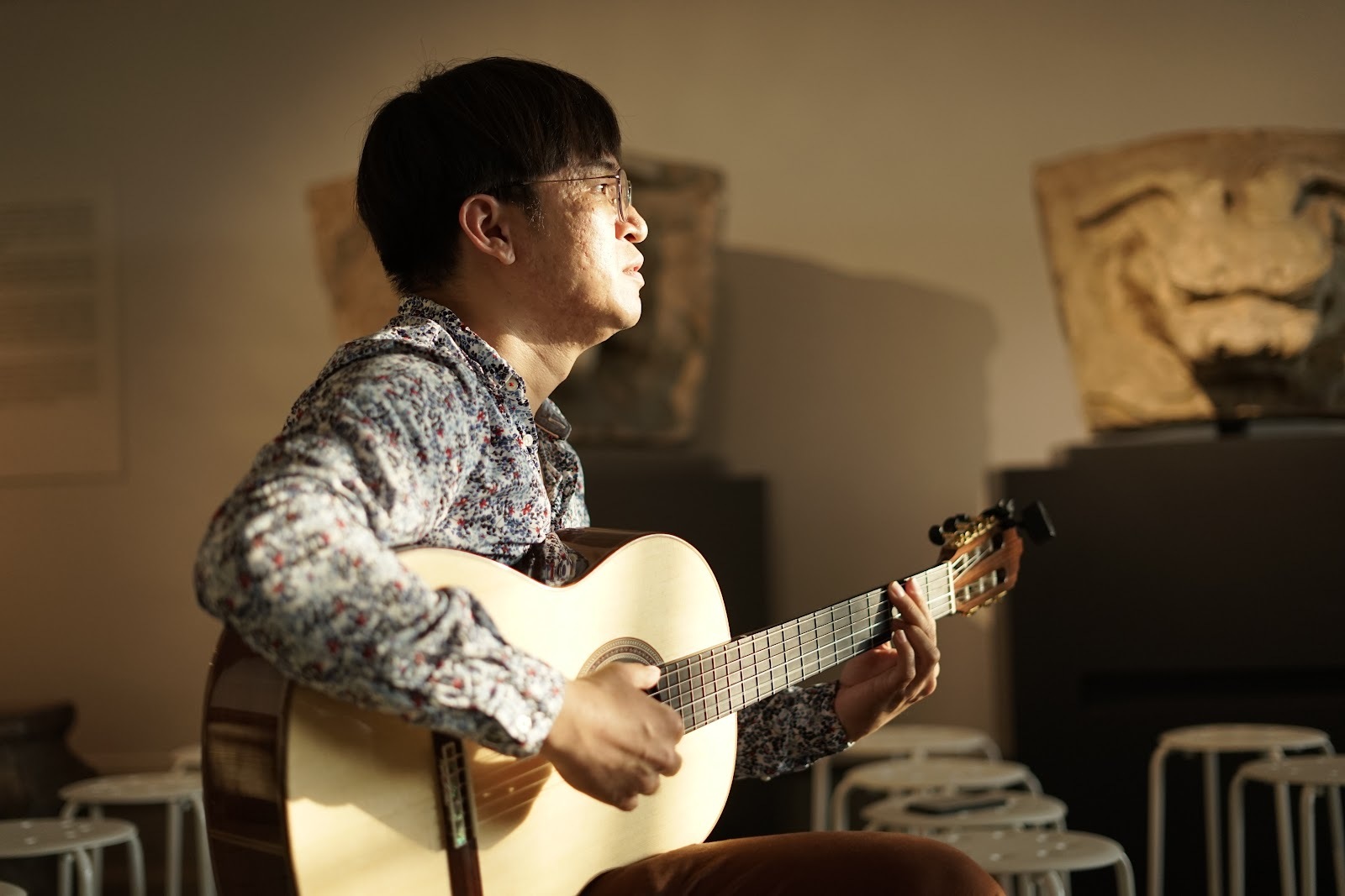 兩張椅子、兩位音樂家、一段即興的對話。這次邀請爵士吉他手 林華勁 與 陳子彰,以雙吉他展開一場細膩的交流。