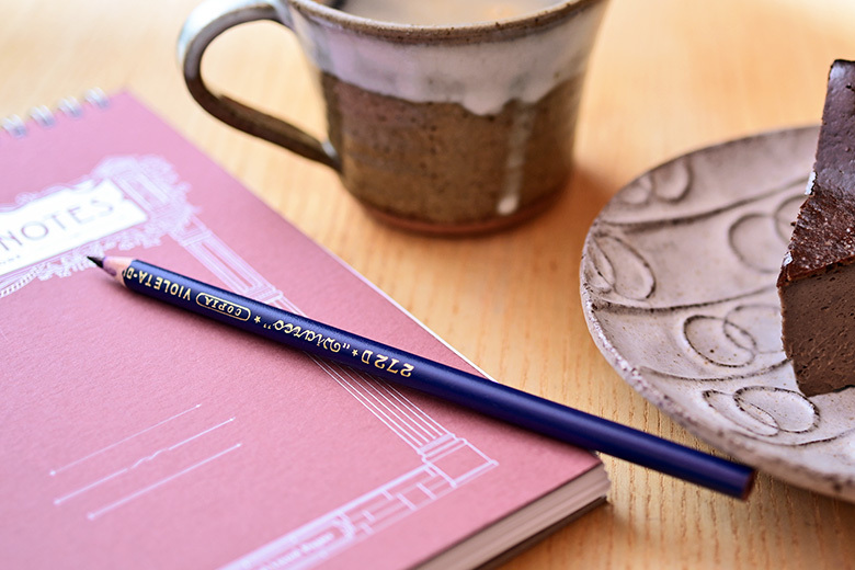 寫起來有點類似紫色色鉛筆,可用橡皮擦擦去,於沾水後書寫於紙上、字跡就能固定在紙面上。
