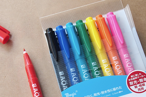 可以寫在塑膠、金屬、玻璃等表面、具有防水效果的簽字筆以往都使用油性墨水,墨跡乾了之後就擦不掉、也具備防水、甚至優異的抗光能力(較不易褪色)。