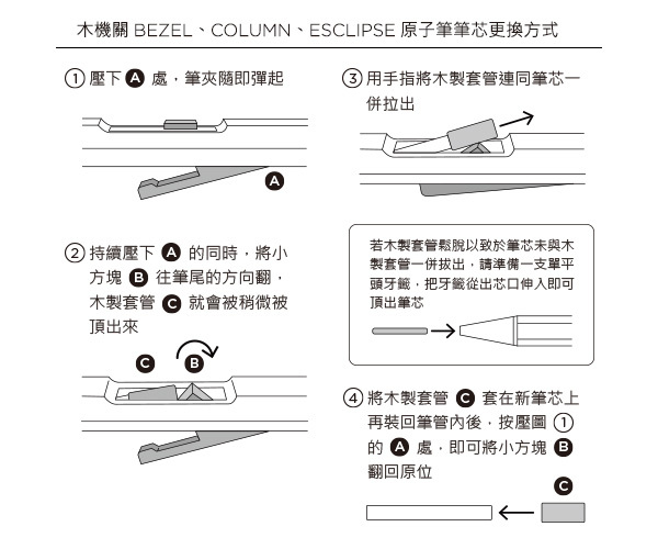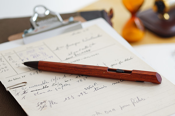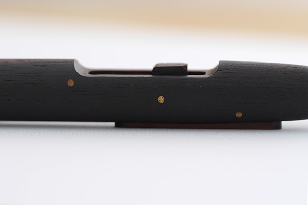 以木材製筆並不少見,甚至每個品牌都有以木材製作的筆款。但這系列的筆就不只是選用木材這麼簡單而已,就外觀所見,幾乎所有零件都使用木材製作,就連筆夾都是木材、因製造需要所開的小孔洞也使用木材填補,令人讚嘆職人的精巧手藝與他的堅持。