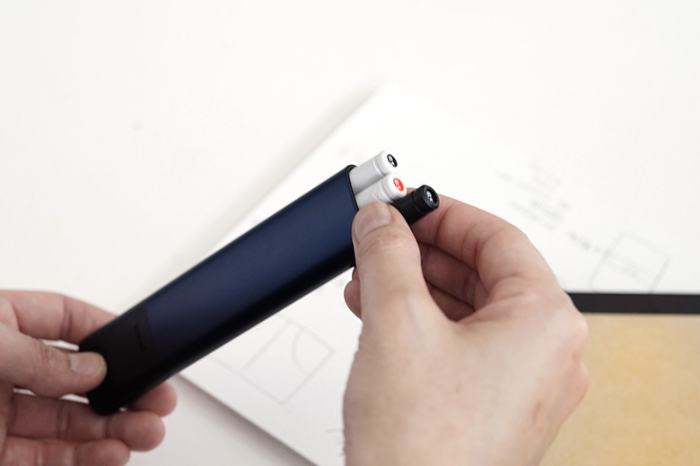 內有2支擦擦筆、1支JETSTREAM原子筆,筆盒有彈出設計,方便取出。