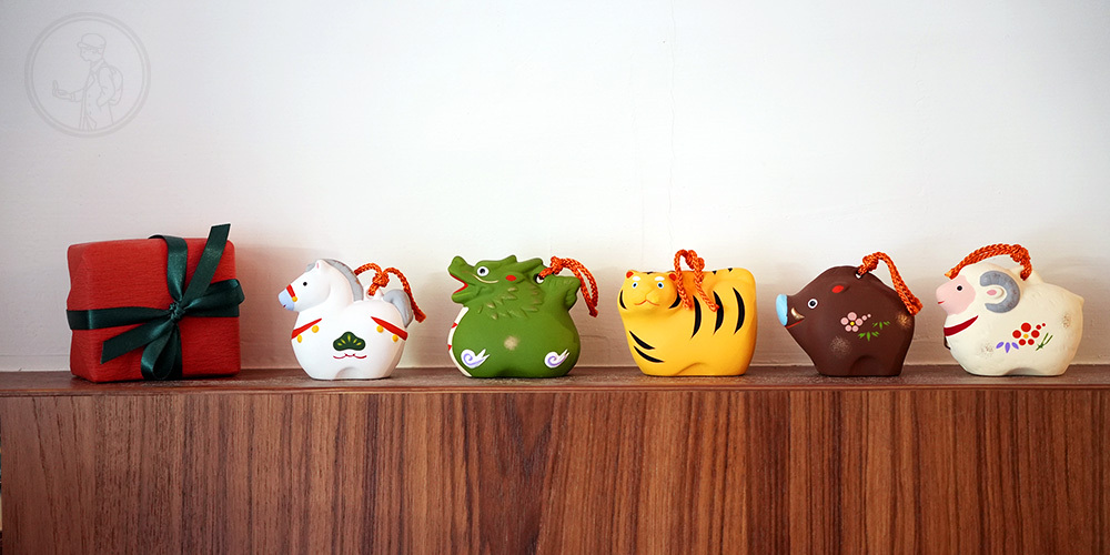 以陶瓷製成的十二生肖土鈴,繫以繩結,搖起來有清翠的鈴聲。象徵趕走壞事迎來好事,具納吉招福的寓意。