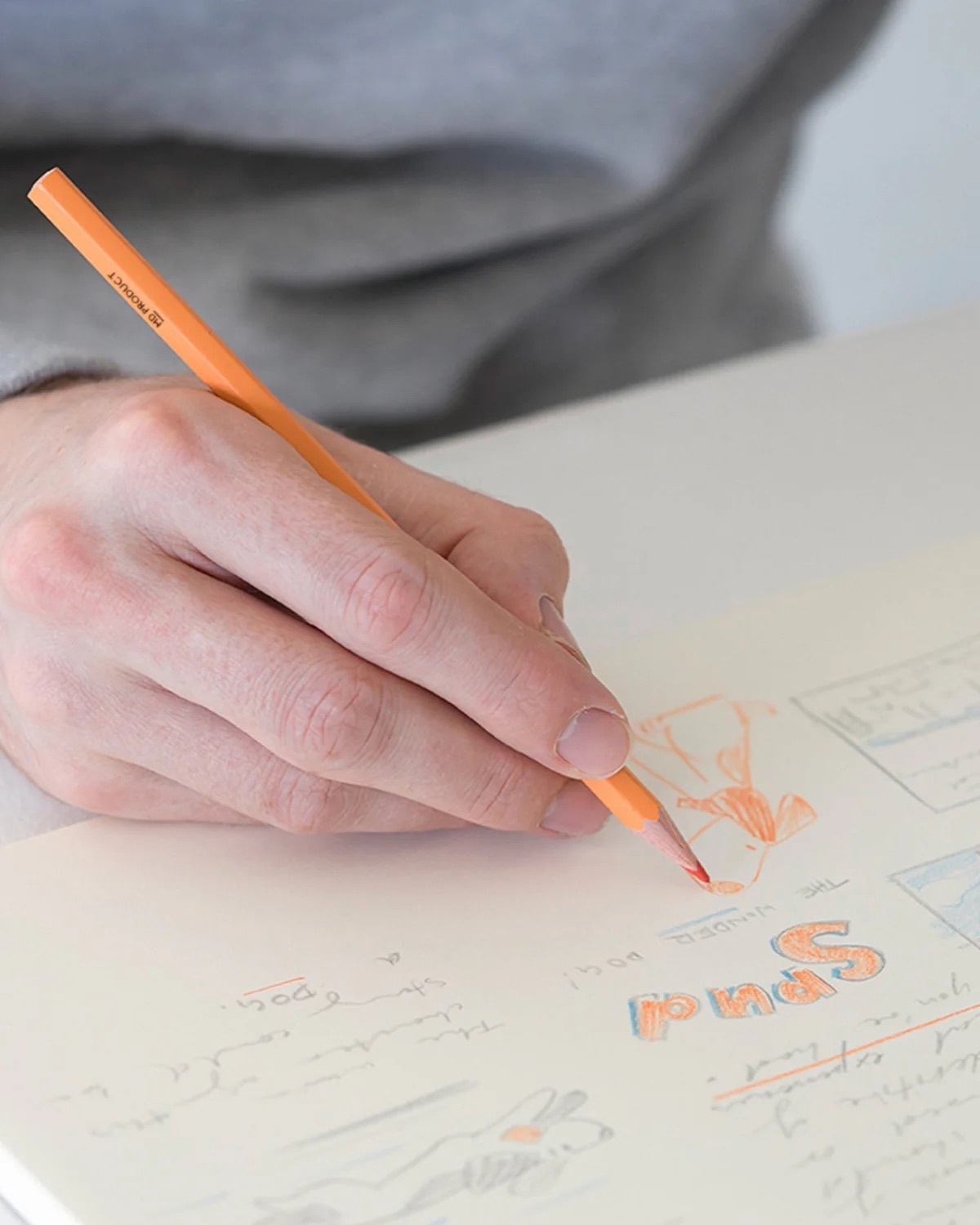 MD筆記本良好的書寫感及溫潤的奶油色紙,一直是許多人的愛好,特別推出了灰、藍、橘色鉛筆,特別適合MD奶油紙的紙張顏色,色鉛筆的書寫感十分紮實、顏色很溫和但又飽和。