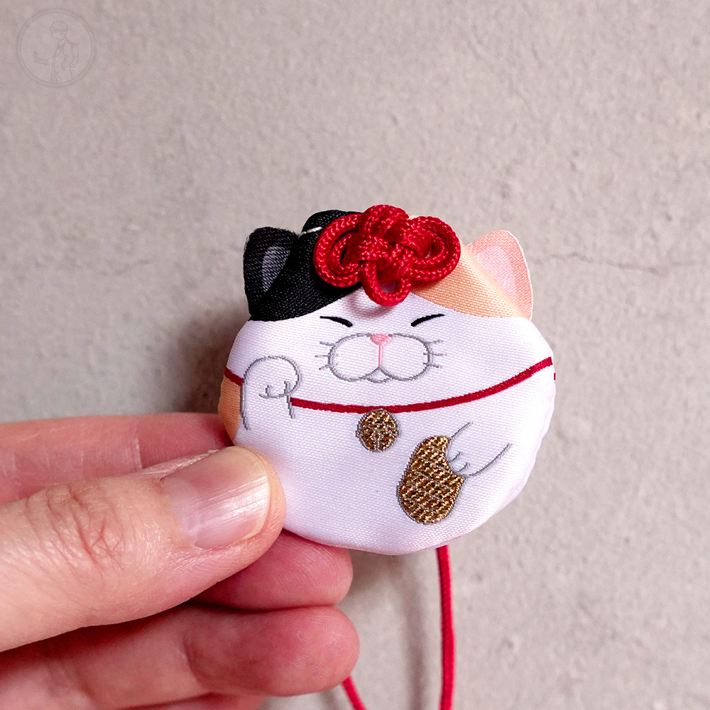 配合新年新願望,採用金線刺繡,與真的御守雷同、連貓的線條也都是由繡線繡成。